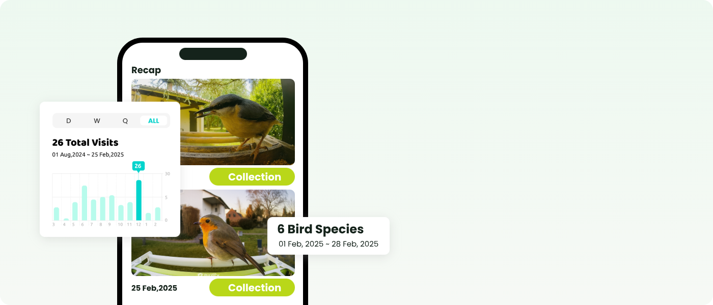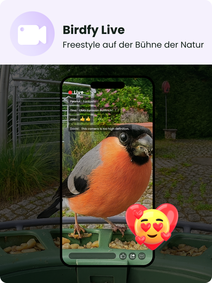 Mit der höheren Bildklarheit und den Benachrichtigungen in Echtzeit entgeht Ihnen kein besonderer Vogelmoment mehr. So wird die Natur direkt und lebendig zu Ihnen nach Hause gebracht.