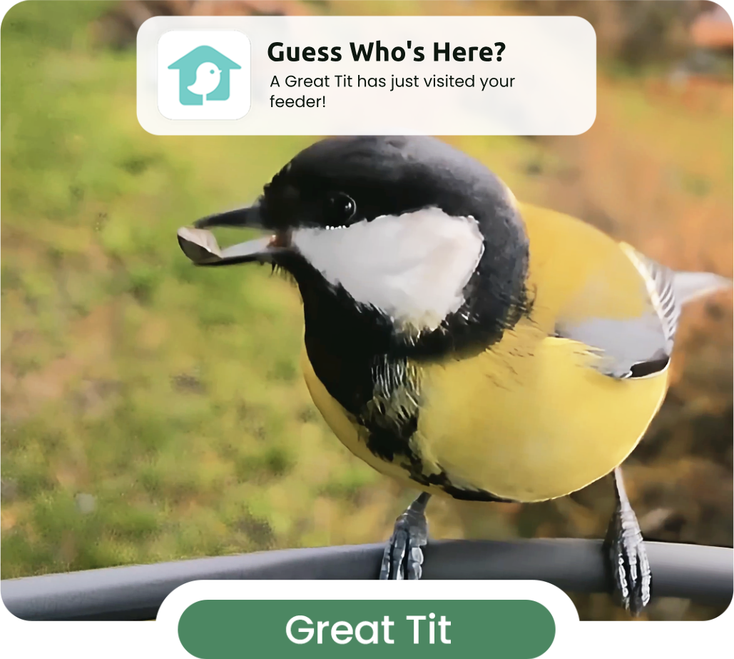Huhu! Ein Vogelgast ist zum Buffet gekommen - eine Echtzeit-Benachrichtigung für Besucher wird Ihnen ein Lächeln entlocken.