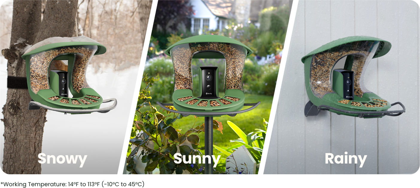 Get notified when a bird visitor is here. Know more about them with the built-in AI that recognizes 6,000+ bird species.