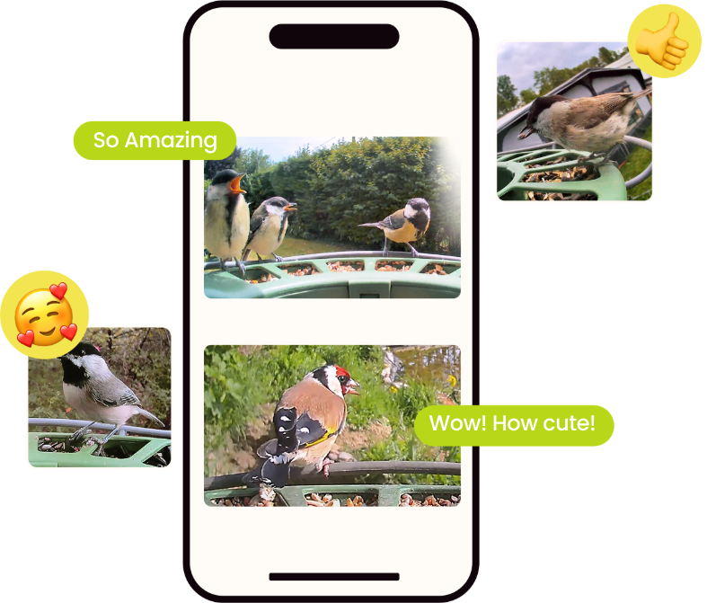 Die Birdfy-App kann kostenlos heruntergeladen werden und ist vollgepackt mit lustigen Funktionen. Beobachten Sie die Vogelfütterung live, erhalten Sie sofortige Benachrichtigungen, genießen Sie automatisch aufgezeichnete Clips und erhalten Sie eine monatliche Zusammenfassung der Besucher Ihrer Futterstelle - alles kostenlos!
