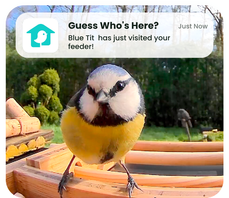 Coo-coo! A bird guest is here for the buffet - a real-time vistor notification will bring you a smile.