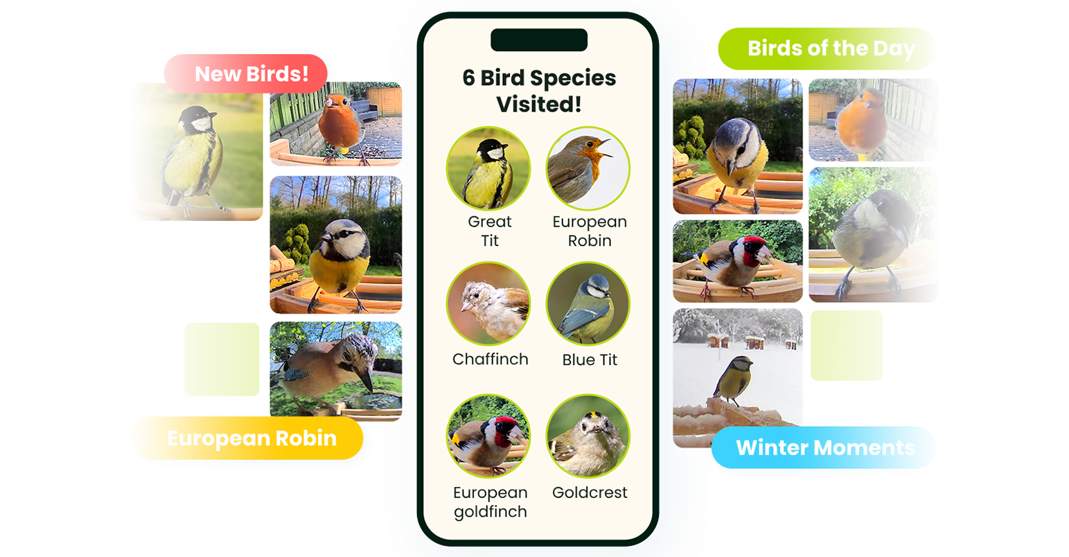 - AI Bird Recognition - Identifies bird species and generates daily feeder highlights.