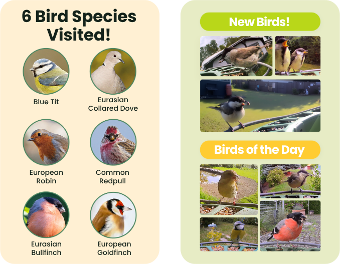 - AI Bird Recognition - Identifies bird species and generates daily feeder highlights.