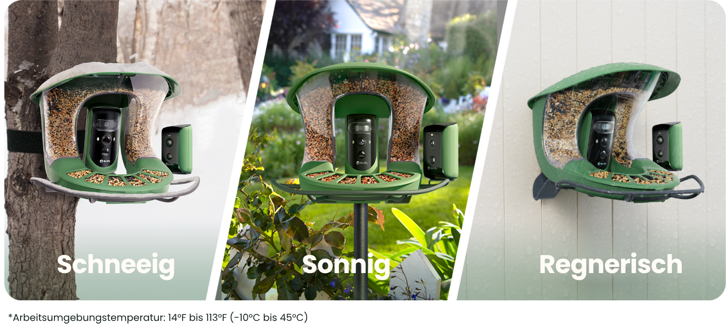 Warum sich mit einem zufrieden geben, wenn man zwei haben kann? Birdfy Feeder 2 Duo bietet zwei Blickwinkel mit einer Front- und einer Seitenkamera und damit ein unschlagbares Preis-Leistungs-Verhältnis mit einem erstklassigen Drei-Linsen-System.