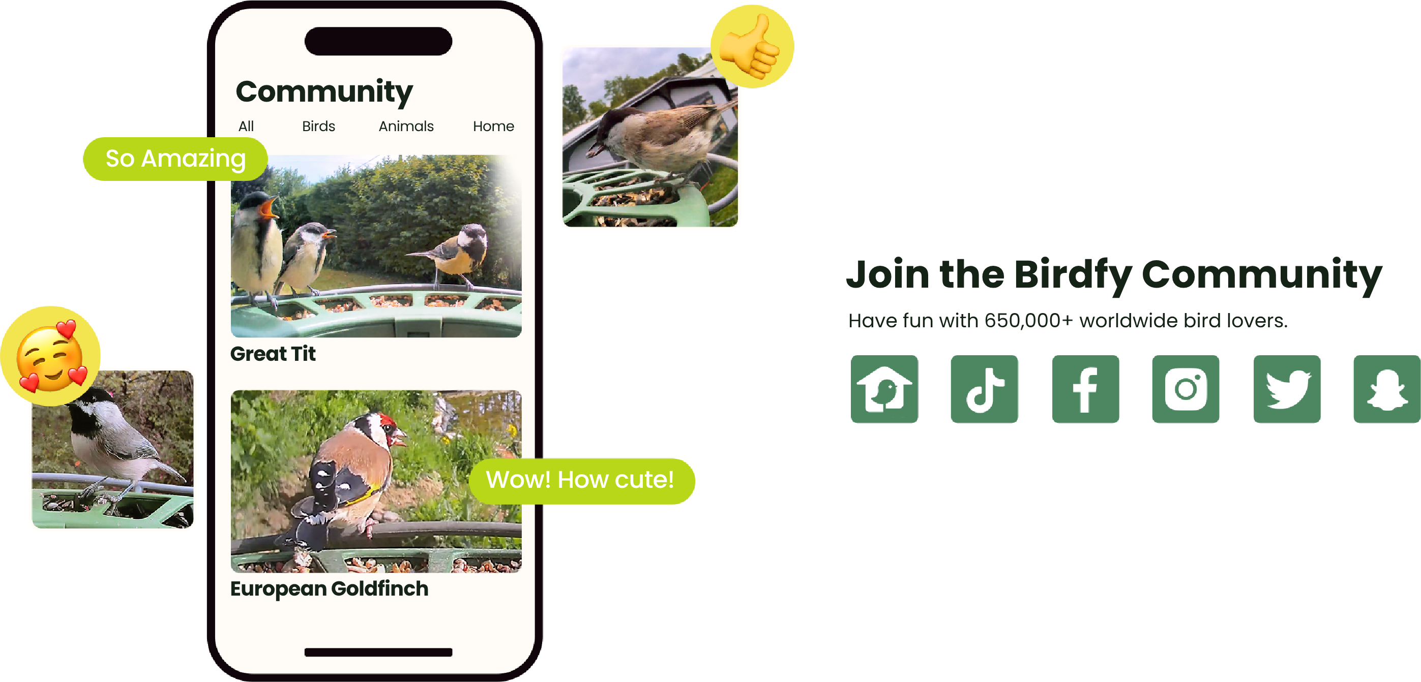 Die Birdfy-App kann kostenlos heruntergeladen werden und ist vollgepackt mit lustigen Funktionen. Beobachten Sie die Vogelfütterung live, erhalten Sie sofortige Benachrichtigungen, genießen Sie automatisch aufgezeichnete Clips und erhalten Sie eine monatliche Zusammenfassung der Besucher Ihres Futterhäuschens - alles kostenlos!