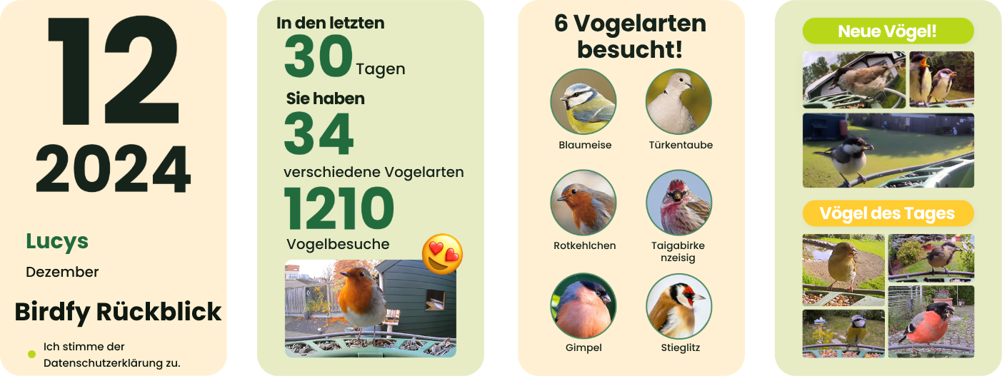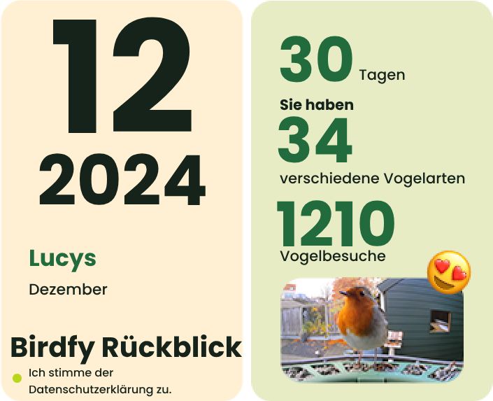 Die Birdfy-App kann kostenlos heruntergeladen werden und ist vollgepackt mit lustigen Funktionen. Beobachten Sie die Vogelfütterung live, erhalten Sie sofortige Benachrichtigungen, genießen Sie automatisch aufgezeichnete Clips und erhalten Sie eine monatliche Zusammenfassung der Besucher Ihres Futterhäuschens - alles kostenlos!