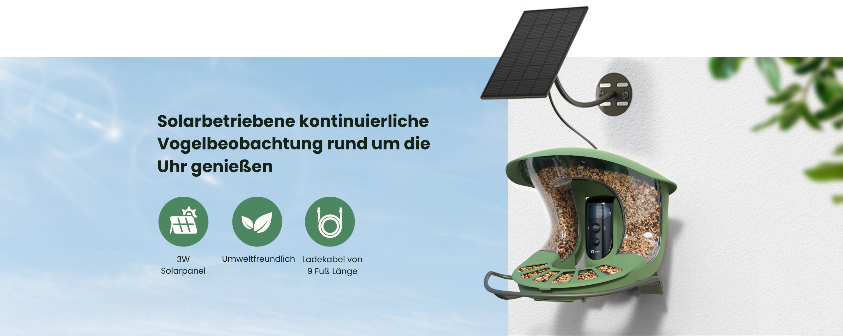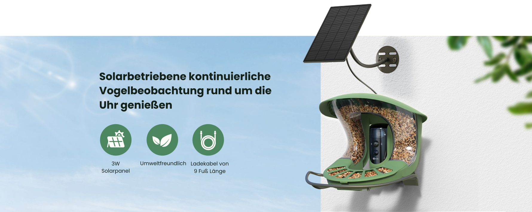 Mit dem Solarpanel, das diesem Vogelfutterhaus beiliegt, werden Sie umweltbewusst. Genießen Sie die kontinuierliche Vogelbeobachtung durch Sonnenlicht.